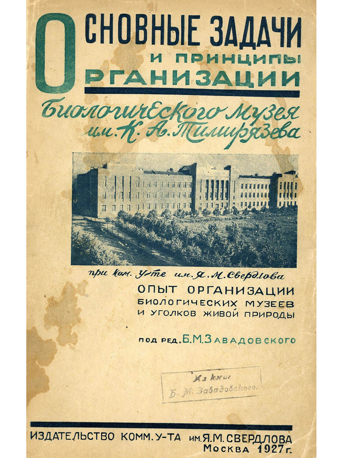 «Основные задачи и принципы организации Биологического музея им. К.А. Тимирязева при Коммунистическом ун-те им. Я.М. Свердлова: опыт организации биологических музеев и уголков живой природы» под ред. Б.М. Завадовского 1927 г.