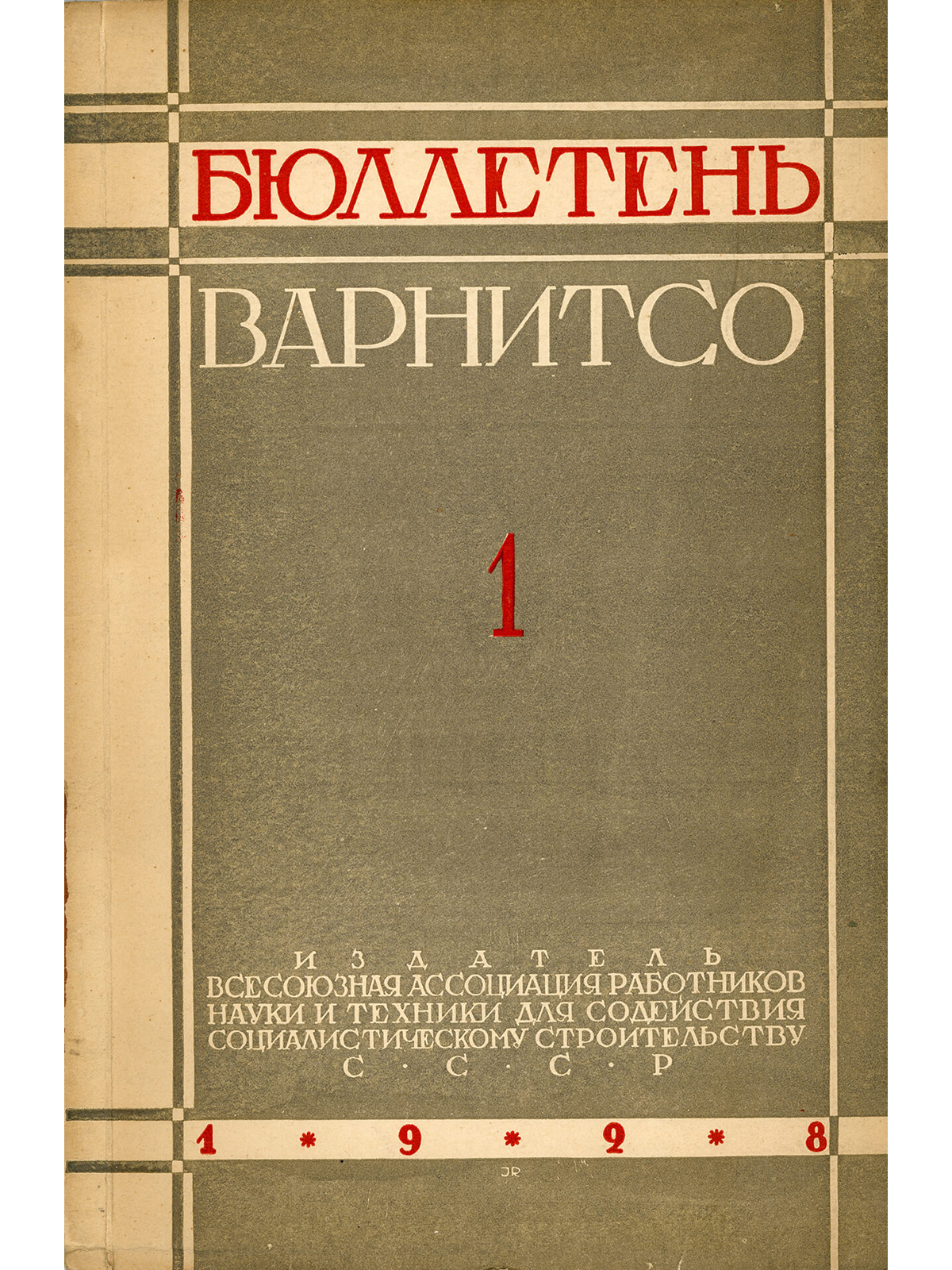 Отметим, что все упоминания о деятельности ВАРНИТСО исчезают к концу 1930-х годов, поэтому это издание мы по праву можем считать уникальным.