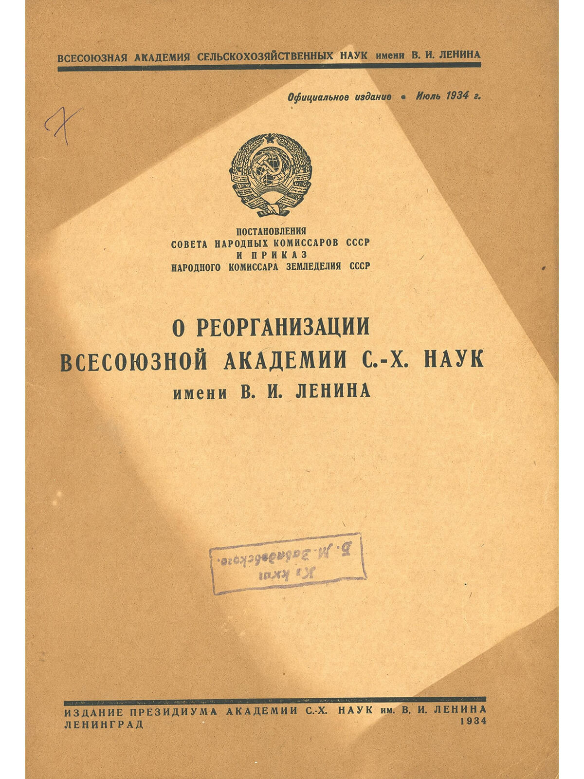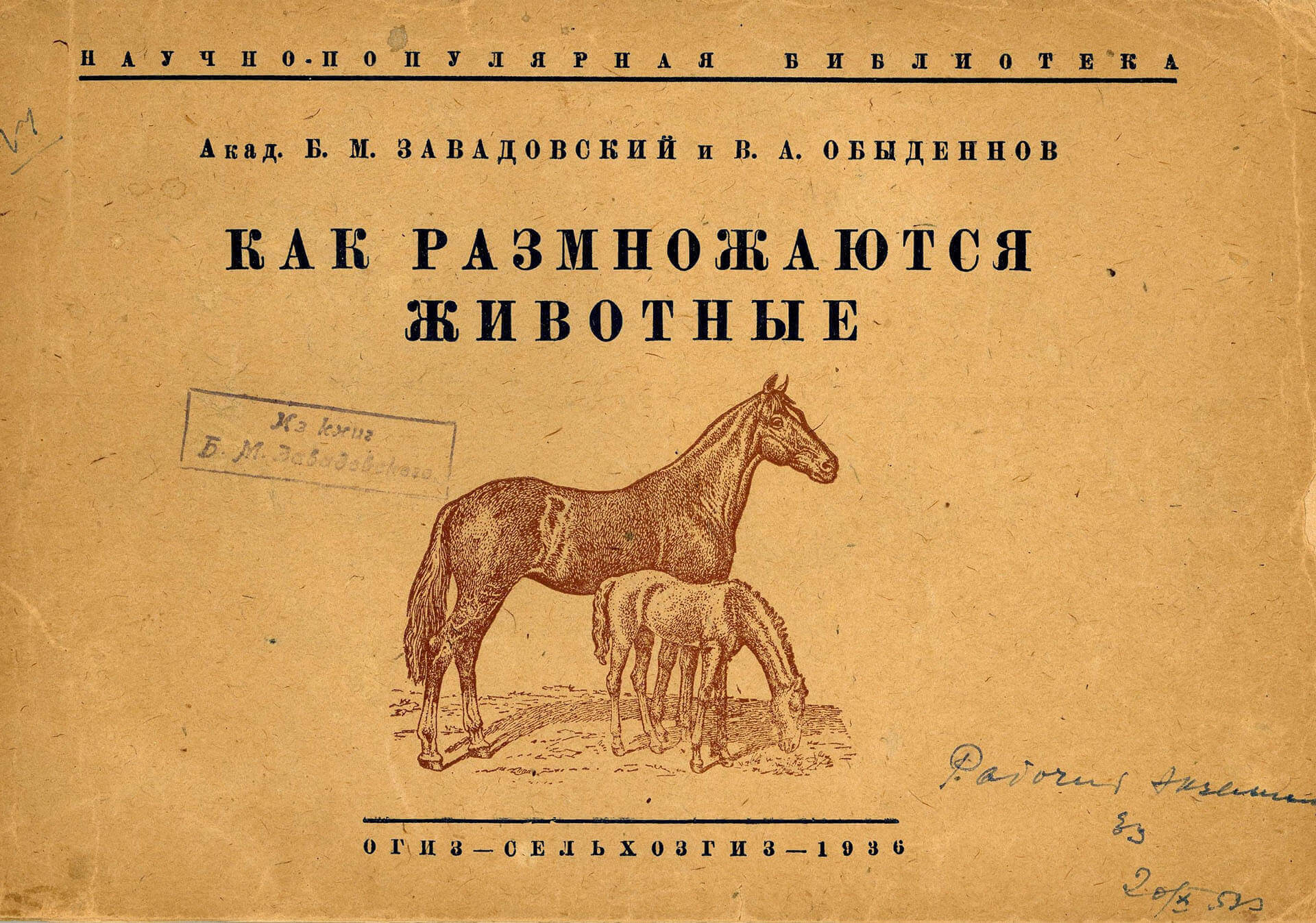 Постановление Совета Народных Комиссаров СССР №1676 от 16 июля 1934 г. в разделе «По животноводству» определяет помимо мероприятий по породному районированию и мероприятий по рациональному кормлению и воспитанию молодняка всех видов скота «Усовершенствовать методы искусственного осеменения для лошадей и крупного рогатого скота». Этот раздел имел прямое отношение к возглавляемой Борисом Михайловичем Завадовским Эндокринологической лаборатории ВИЖ, где, применяя СЖК (сыворотку жеребых кобыл) и разрабатывая методы определения беременности у с/х животных, он решал важные для народного хозяйства задачи. СЖК использовалась для стимуляции процессов размножения с/х животных. Особое внимание уделяется селекции и размножению лошадей, эти вопросы курирует лично С.М.Буденный.
